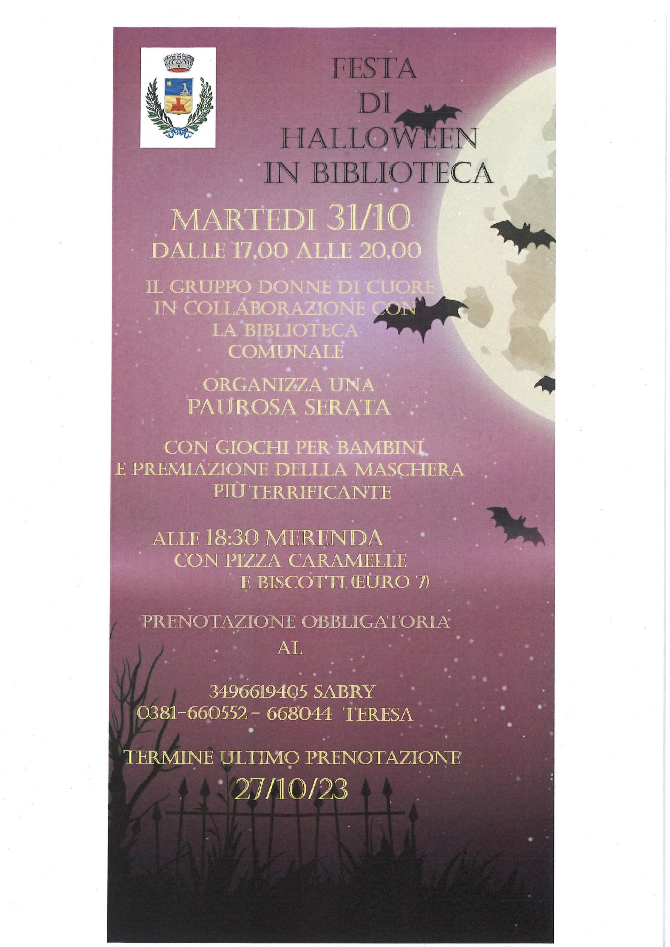 Prenotazione obbligatoria entro il 27.10.2023 ai numeri 3496619405 (Sabry) - 0381660052/668044 (Maria Teresa)
