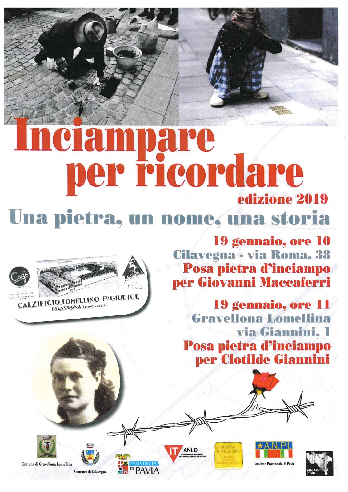 Sabato 19 Gennaio - ore 10.00 - Cilavegna - Via Roma n. 38 - Posa pietra d'inciampo per Giovanni Maccaferri