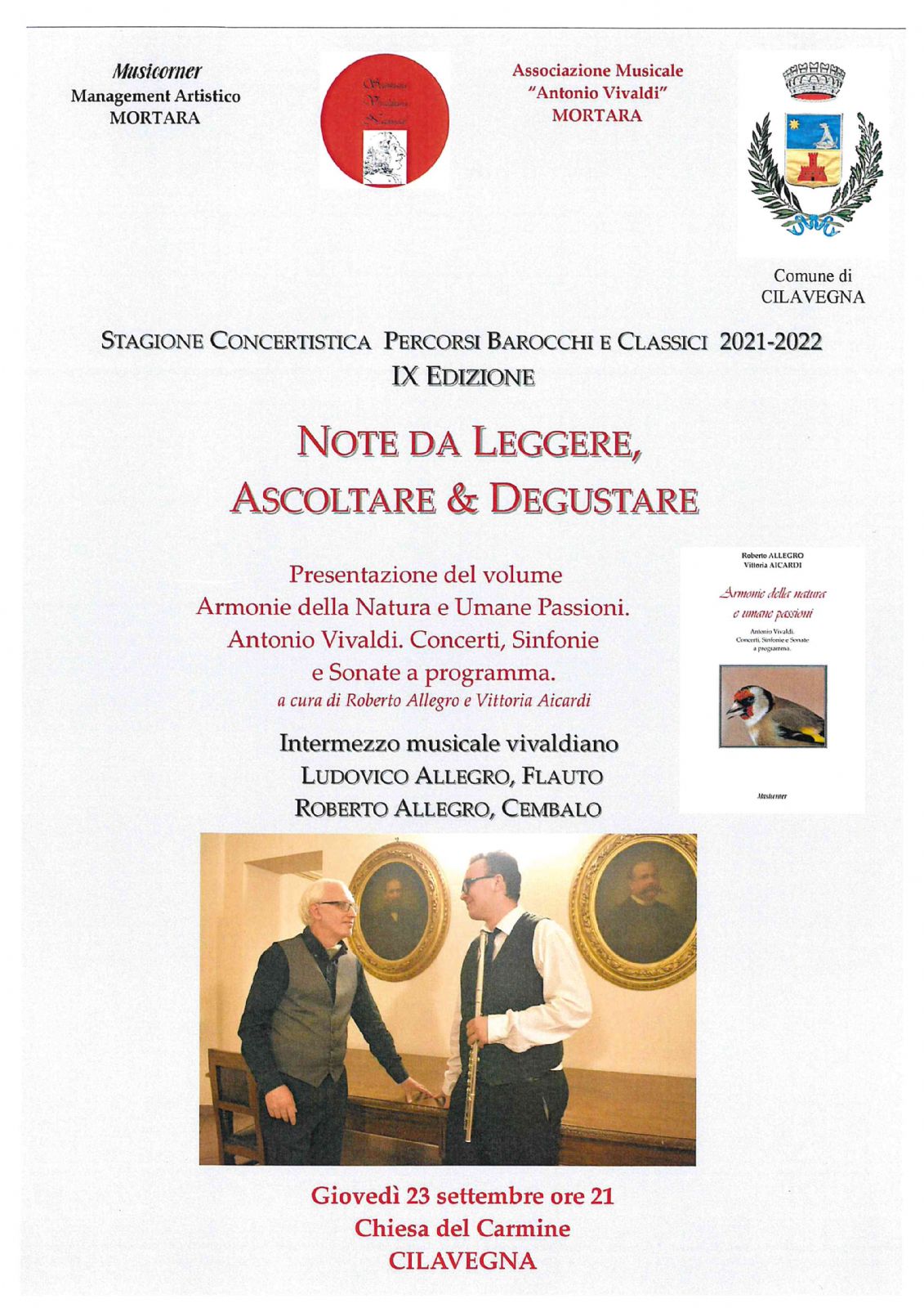 "NOTE DA LEGGERE, ASCOLTARE & DEGUSTARE" - Stagione concertistica Percorsi Barocchi e Classici 2021 - 2022 IX Edizione