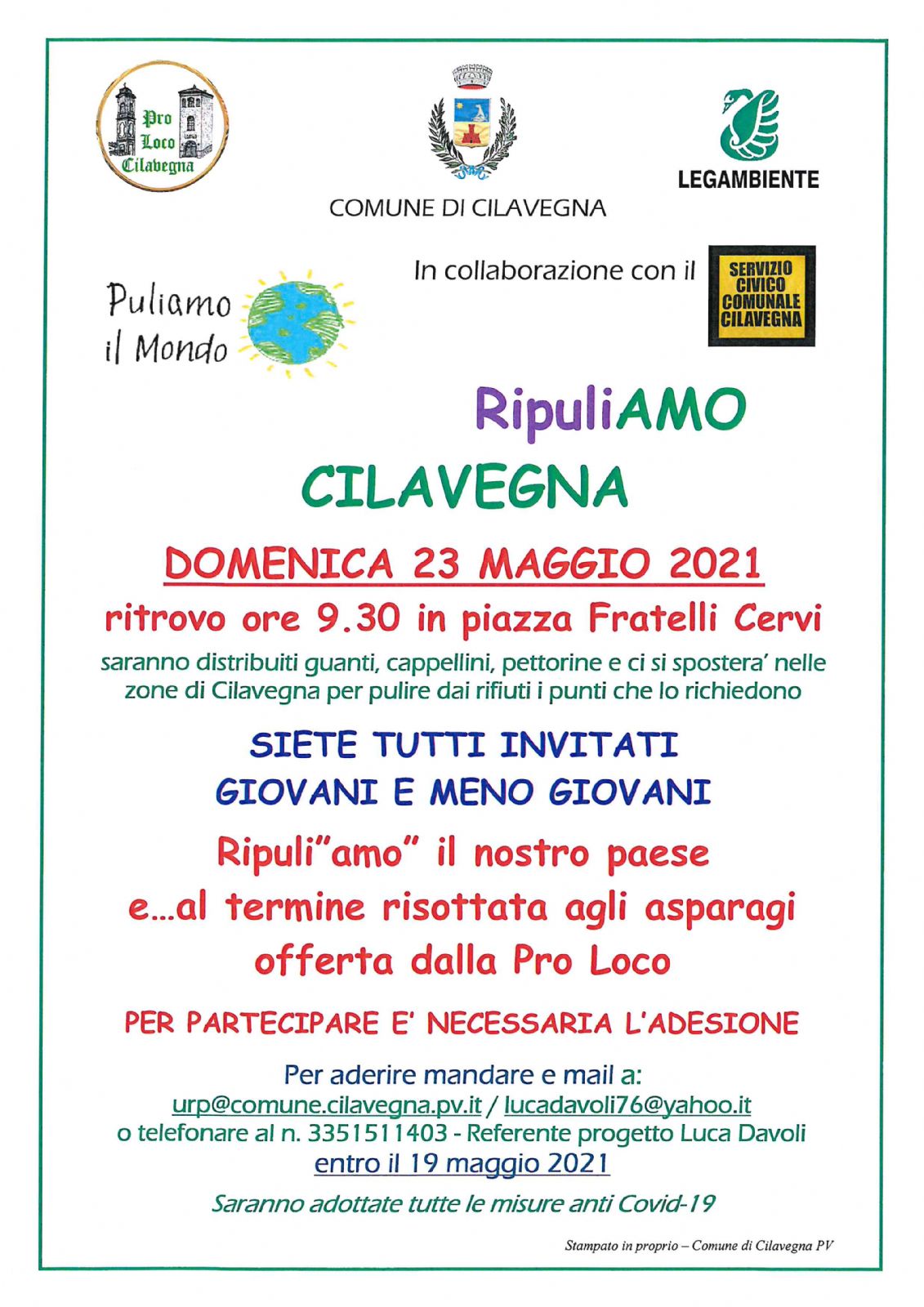 via email a urp@comune.cilavegna.pv.it - lucadavoli76@yahoo.it