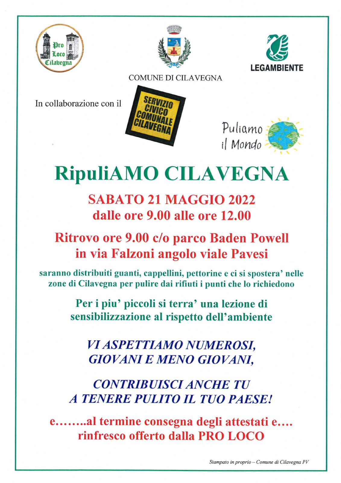 | Organizzazione | Comune di Cilavegna - Legambiente - Puliamo il Mondo - PRO LOCO |