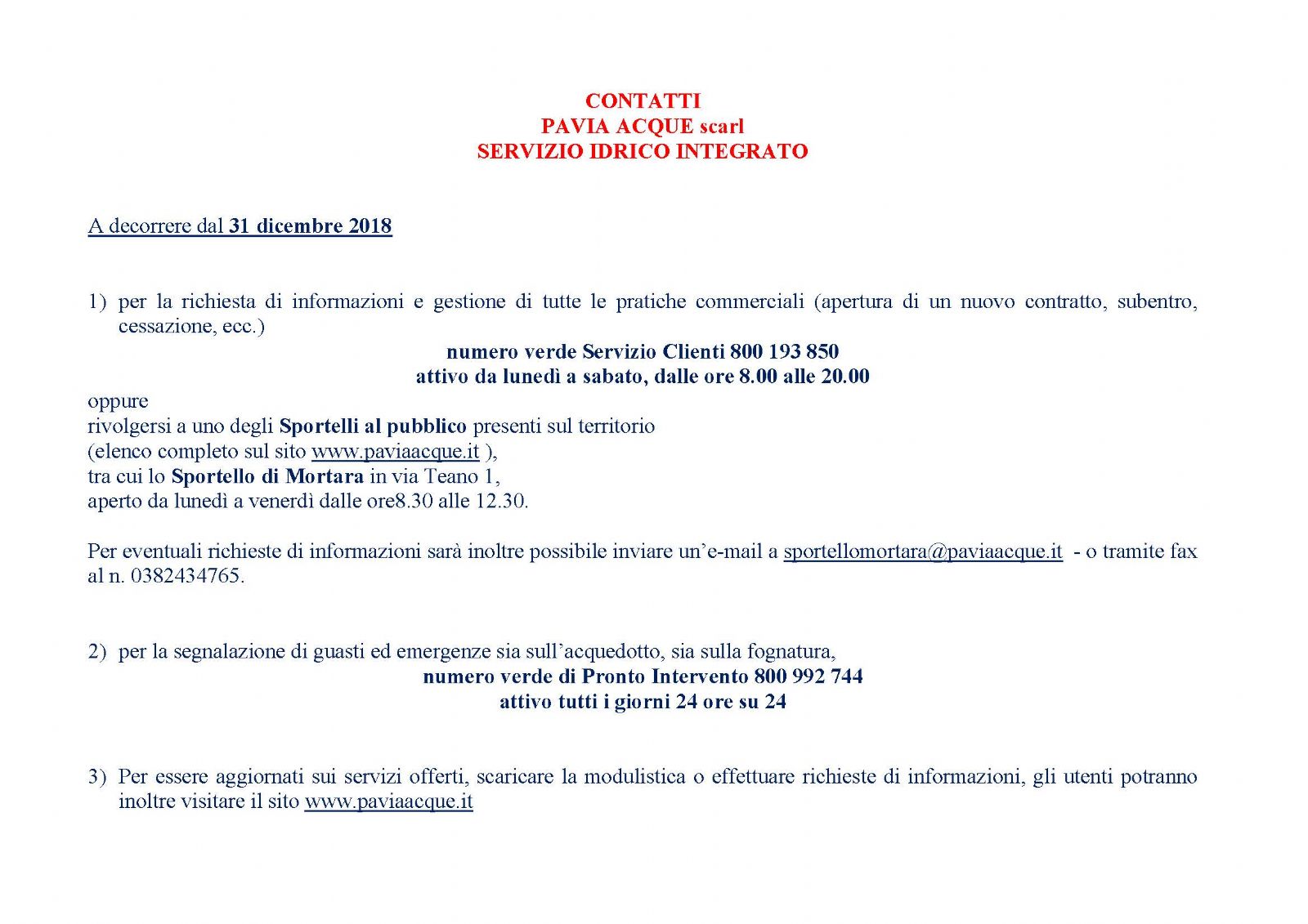 INDICAZIONE CONTATTI a far data dal 31.12.2018