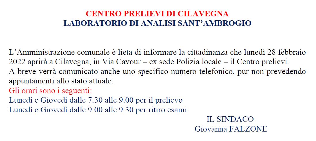 Apertura Centro Prelievi di Cilavegna - Laboratorio di Analisi Sant'Ambrogio